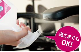 ノロノット専用のスプレーは、写真のように逆さまにしてもスプレー可能です。