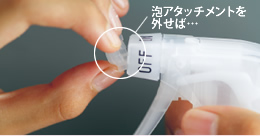 ※「泡」か「霧」かは、スプレー先端のアタッチメント装着の有無で決まります。